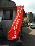 目印は九重ラベンダー園と赤い旗。小さなお店に沢山の種類のアイスが並びます。
